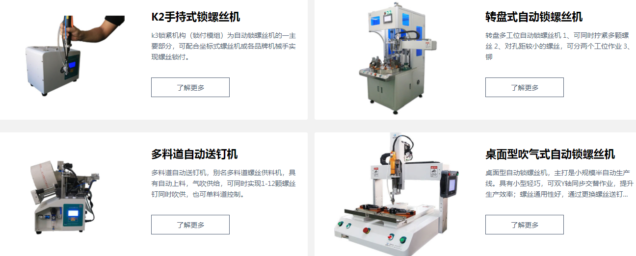 之上便是有關自動螺絲機都用在哪兒?精心的全自動打螺絲機不容置疑是一個很好的挑選 ,不論是在提經濟收益或是省成本費方面都起著挺大的功效。應用全自動鎖螺絲機來替代人工實際操作,不只降低人工服務項目成本費,而且提升了工廠高效率,是一些智能化工廠的必需挑選 !
